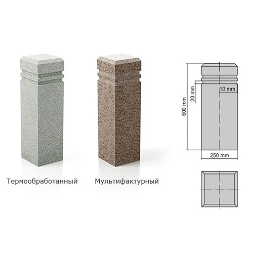 Парковочный столбик (ограждения) из гранита, тип СТ.Г03. Основание - квадратное. Термообработка / мультифактура. Гранит - на выбор.
