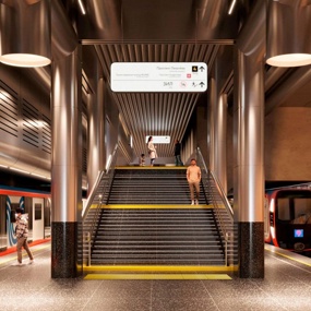Согласована архитектурная концепция станции «ЗИЛ» Бирюлевской линии метро. Ее оформят в стиле промышленной эстетики — колонны и потолок облицуют нержавеющей шлифованной сталью, а для пола используют плиты из темного гранита.