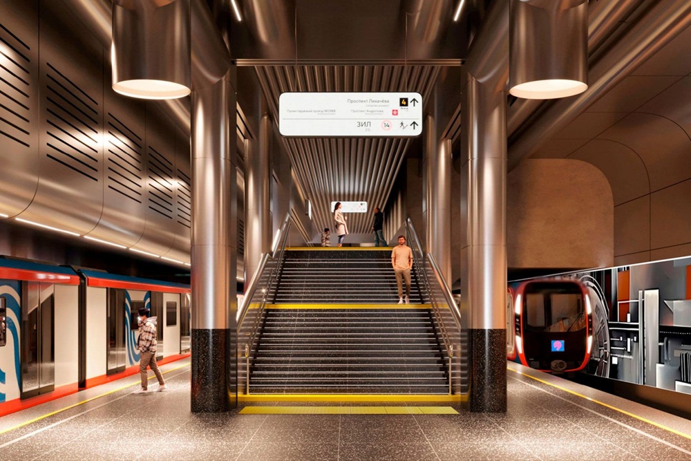 «Дизайн выбран не случайно. Линия берет начало на территории, где раньше располагался легендарный завод имени Лихачева. В интерьере платформенного участка будут преобладать элементы из нержавеющей шлифованной стали. Этим материалом облицуют колонны и потолок. На полу используют плиты из натурального термообработанного темного гранита», — отметил Мэр Москвы.
